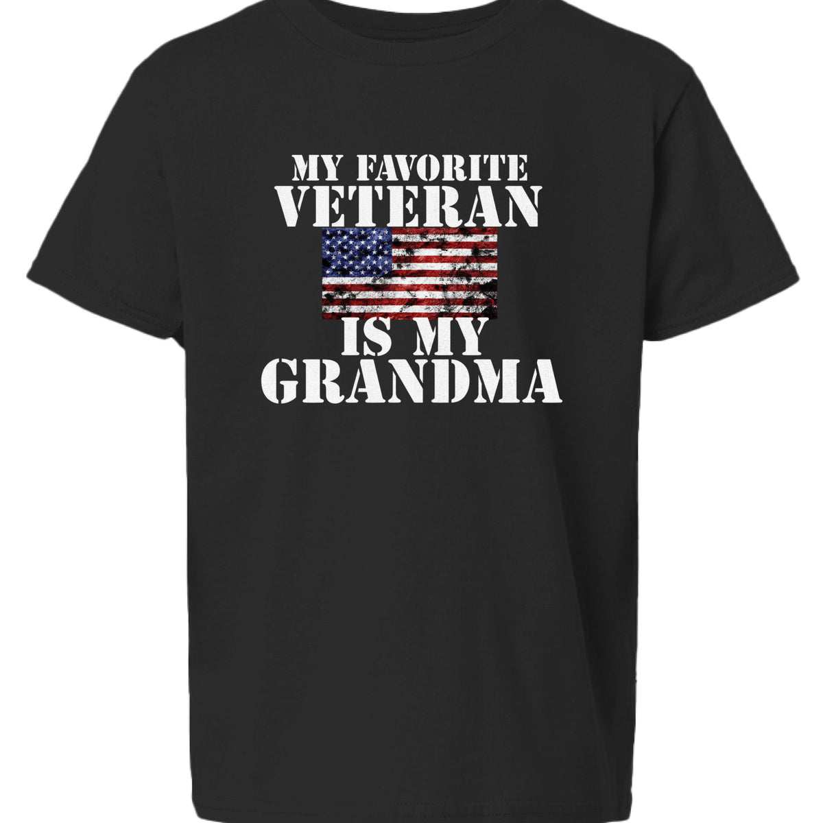 This youth tee honors the veterans who mean the most — the Grandma who served with strength, sacrifice, and love. Designed for kids who are proud of their family’s service and want to wear that pride loud.